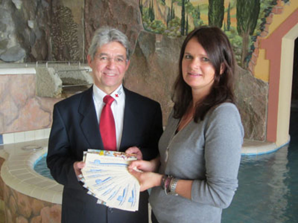 Heinz Steinhart, Geschäftsführer und Aufsichtsratvorsitzender der Kristall Bäder AG, hat ein großes Herz für das Rote Kreuz, insbesondere für den Blutspendedienst. Sein Motto ist: Wasser für Blut. So spendiert er den Blutspendern im Landkreis rund 1000 Freikarten für das Kristall-Trimini in Kochel, die zunächst an den Terminen in Kochel, Benediktbeuern und Schlehdorf ausgegeben werden.