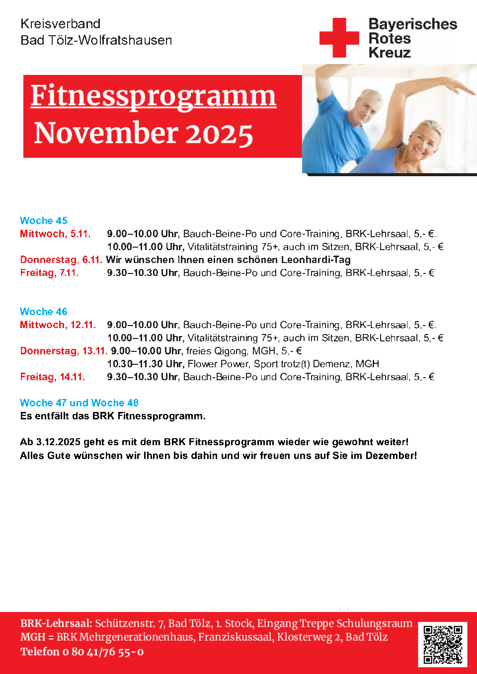Sie haben Freude an Bewegung und möchten Sich fit halten? Dann besuchen Sie unser BRK Fitnessprogramm. Viel Spaß dabei!
