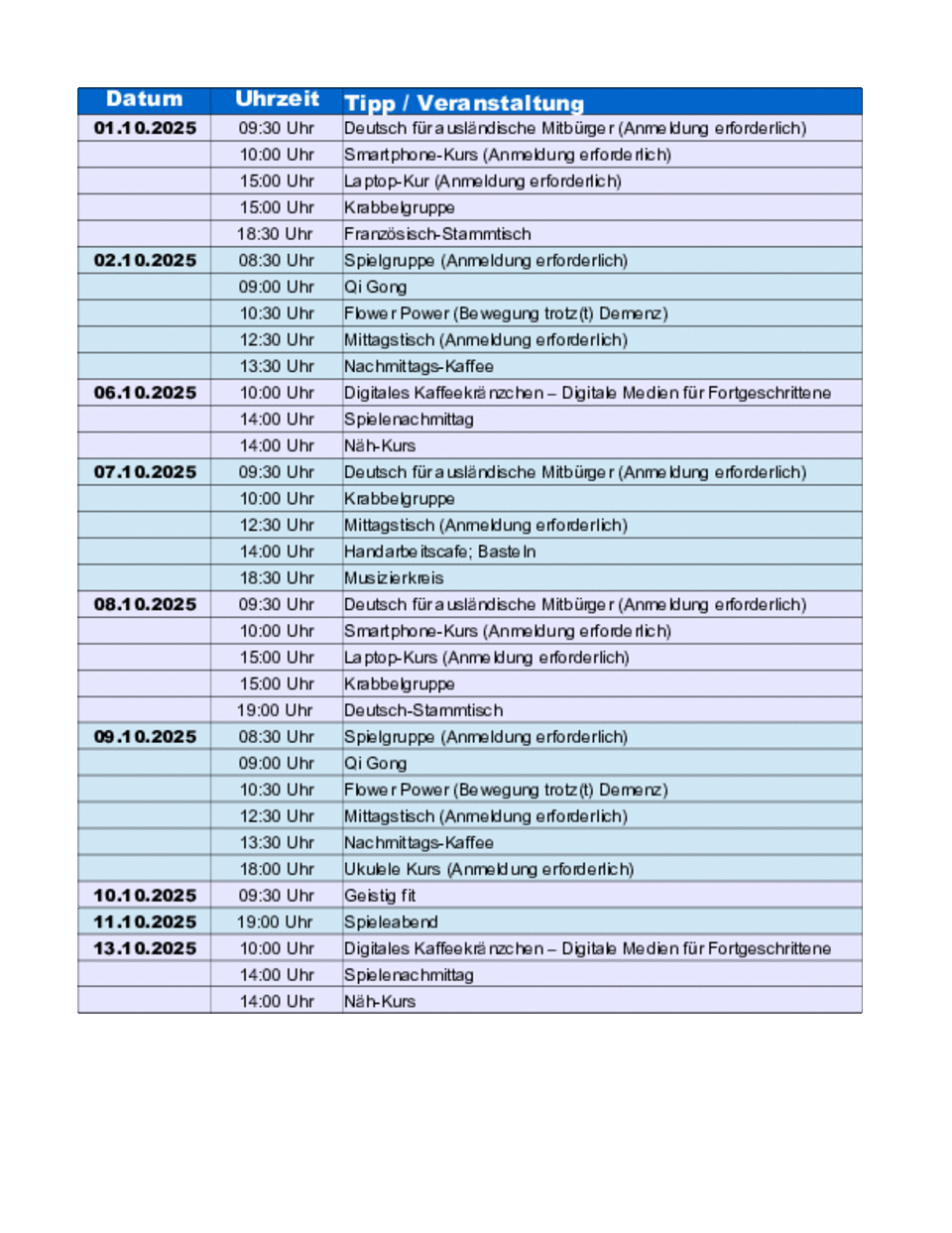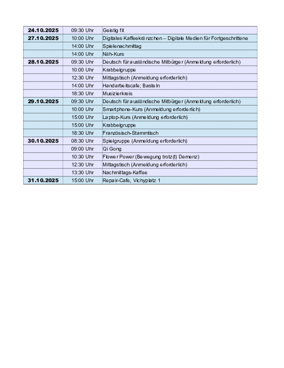 Mit Bewegung Demenz trotzen - mitmachen, gemeinsam Lachen, sich bewegen und diese für alle belastende Erkrankung mal vergessen dürfen. Angehörige, Demenzerkrankte, Menschen, die sich gerne bewegen sind herzlich eingeladen mitzumachen! Jeden Donnerstag um 10:30 Uhr. Die Teilnahme ist durch Spenden kostenfrei - wie schön!