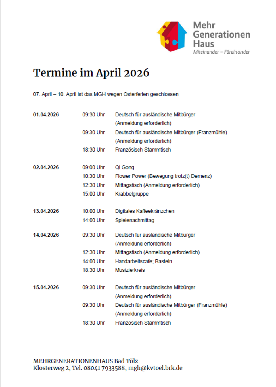 Das Repair-Café findet immer am letzten Freitag im Monat im Weltraum am Vichyplatz 1, im Badeteil in Bad Tölz statt. Abgabe in der Zeit von 15 - 17 Uhr möglich. Abholung bis 19 Uhr. Weitere Informationen
