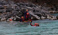 Nach einer Vertiefung der theoretischen Ausbildung für Fließwasserretter im Unterrichtsraum stürzten sich elf Wasserretter und Rettungsschwimmer…
