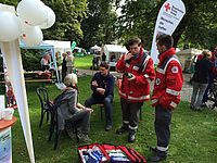 Der BRK-Kreisverband Bad Tölz - Wolfratshausen brachte am 21. September auf dem ISARSANA Lernfest, im Kurpark Bad Tölz, Interessierten Besuchern Erste-Hilfe-Handgriffe bei.