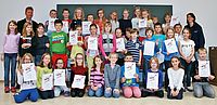 36 Kinder von der zweiten bis zur fünften Klasse Jahren erhielten am 24. Juni ihren Schulsanitätsdienstausweis. Alle hatten sich freiwillig zur BRK-Ausbildung „Juniorhelfer“ des Schulsanitäters…